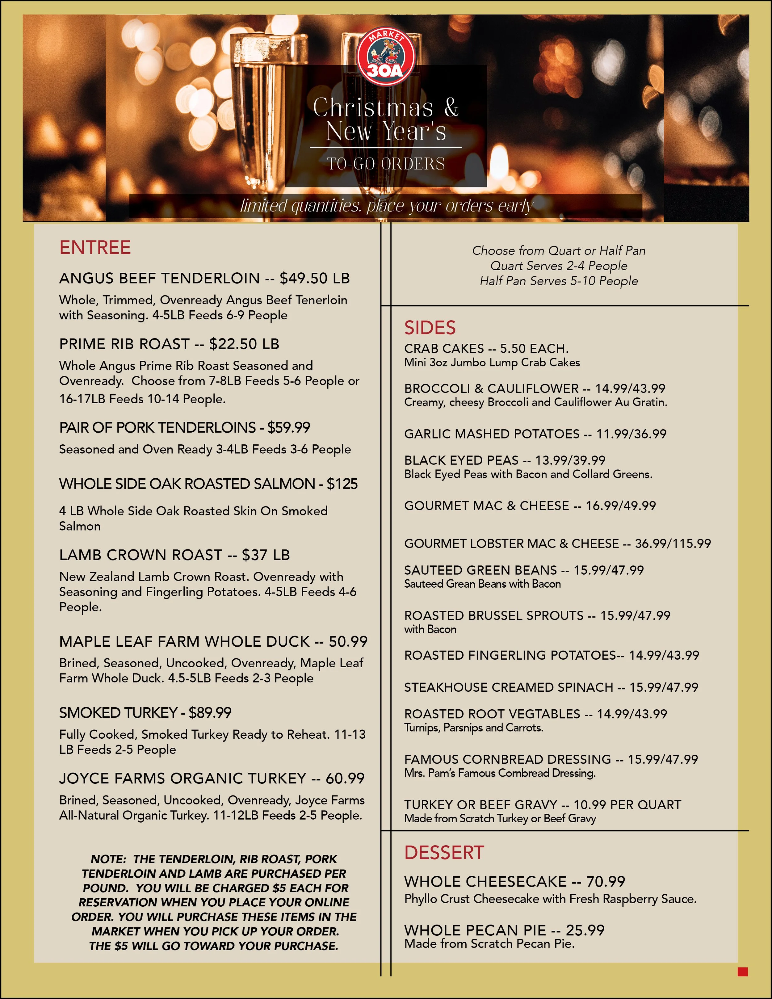 ORDER YOUR CHRISTMAS AND NEW YEAR’S EVE TO-GO ONLINE
